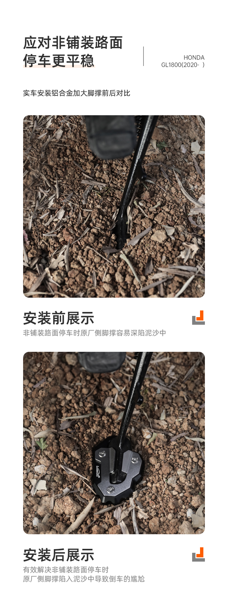 增大脚撑与路面接触面积