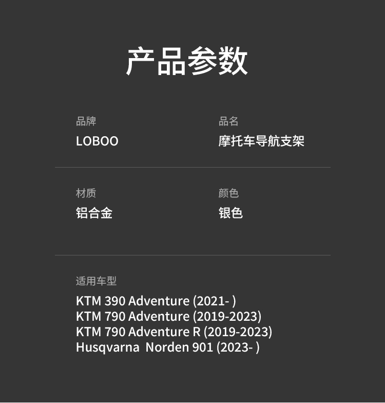 适用于 KTM 390 Adventure (2021- ) KTM 790 Adventure (2019-2023 ) KTM 790 Adventure R (2019-2023 ) Husqvarna Norden 901(2023- )