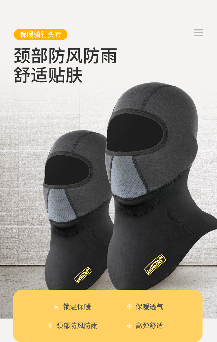 头部保暖面料,轻薄舒适