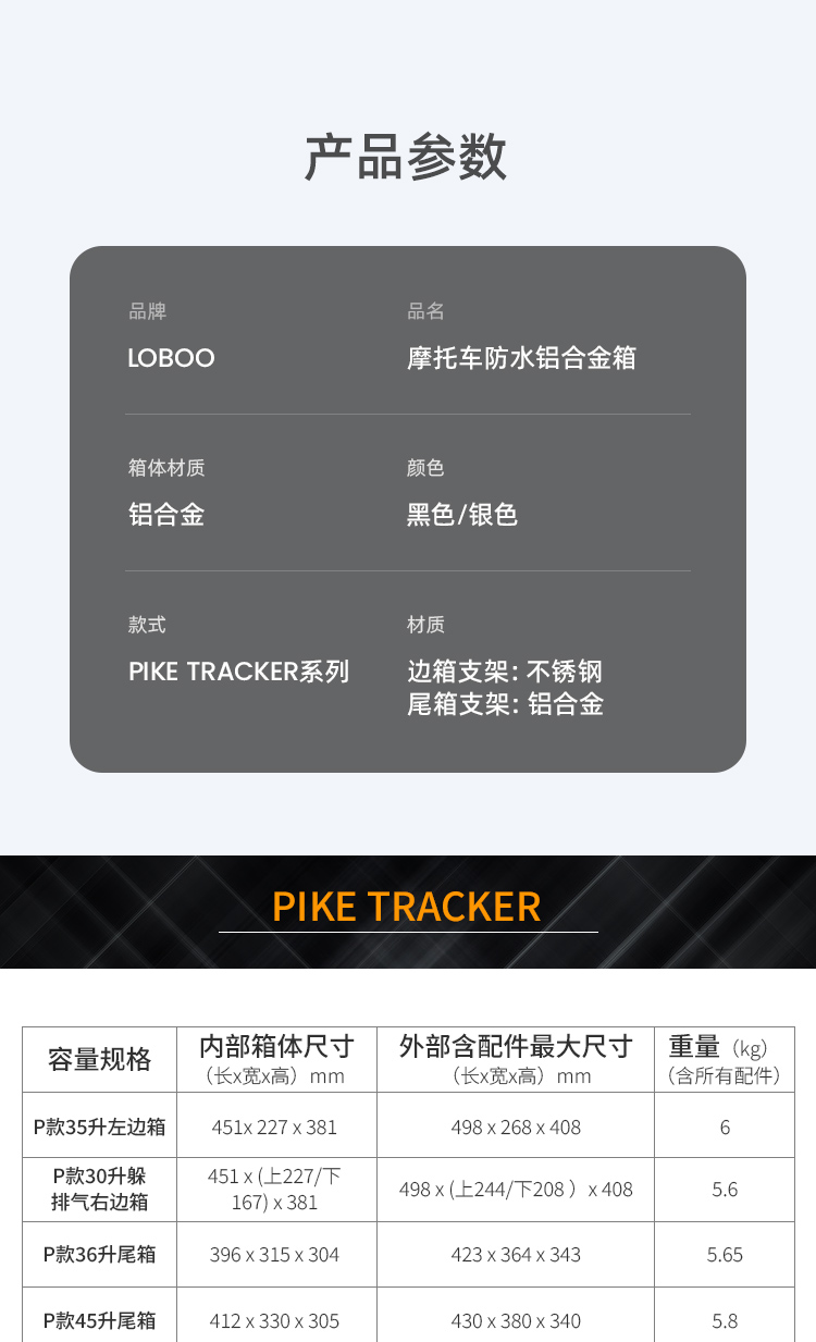 PIKE TRACKER系列 摩托车防水铝合金三箱