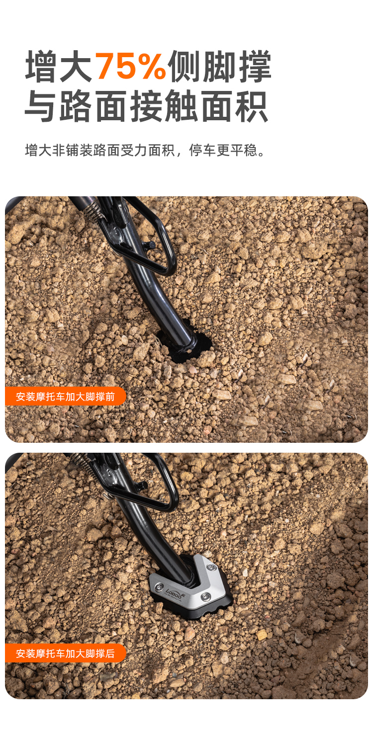 增大75%侧脚撑,与路面接触面积