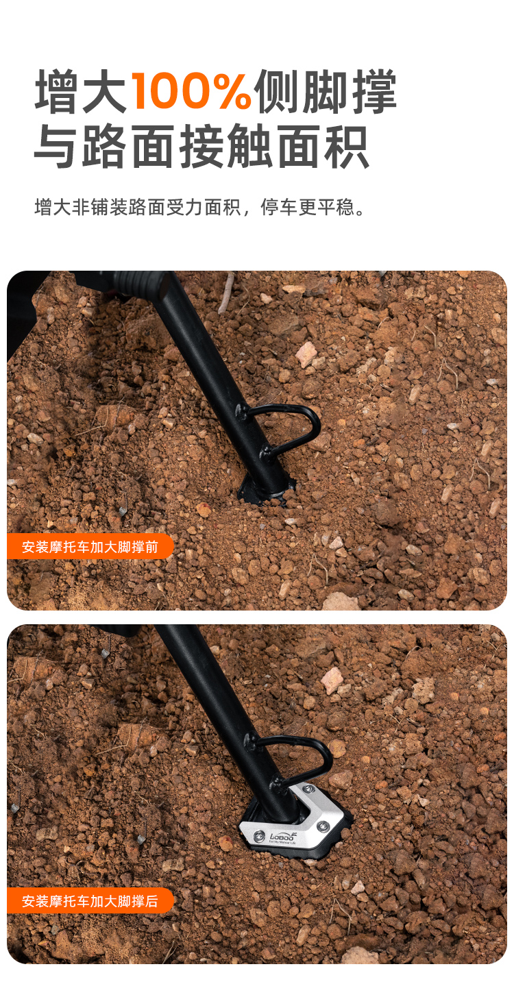 增大100%侧脚撑与路面接触面积