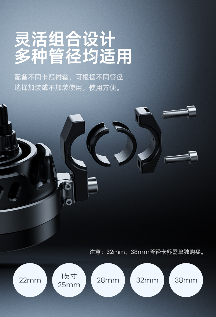 22mm、25mm、28mm管径适用(32mm38mm管径卡箍需单独选购)