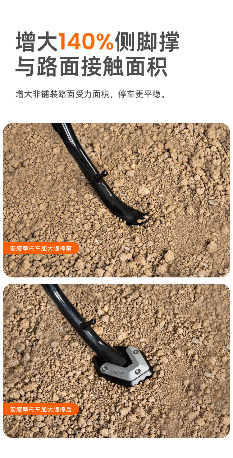 增大140%侧脚撑与路面接触面积