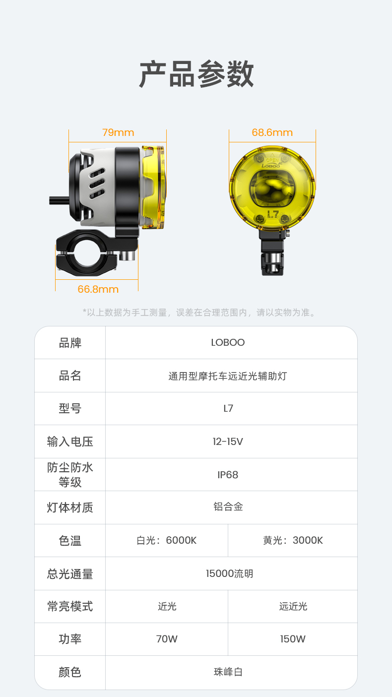 L7 摩托车通用型远近光辅助灯
