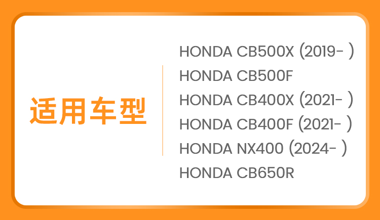 适用于HONDA CB500X(2019-)HONDA CB500F(2019-)HONDA CB400X(2021-)HONDA CB400F(2021-)HONDA NX400(2024-)HONDA CB650R