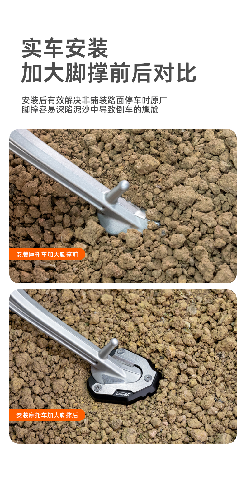 增大脚撑与路面接触面积