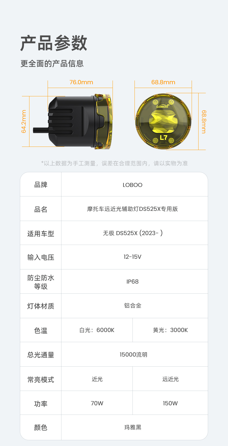摩托车远近光辅助灯 L7-DS525X