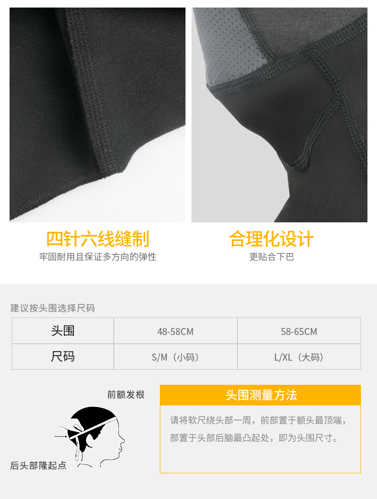 头部保暖面料,轻薄舒适