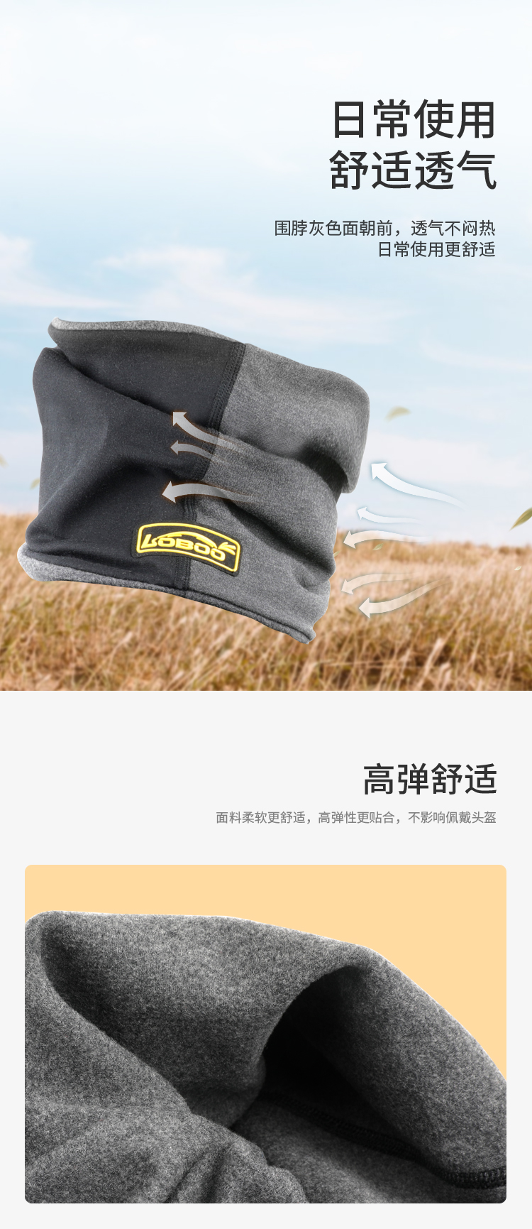 围脖防风、透气两用,兼顾日常使用