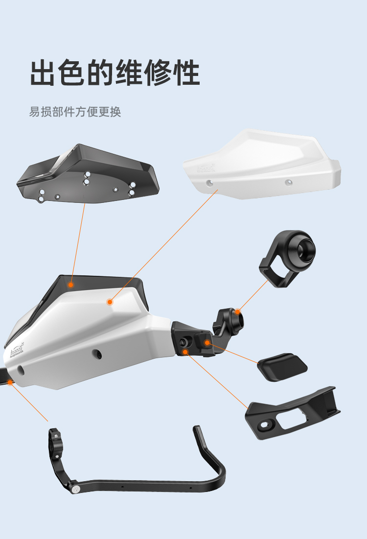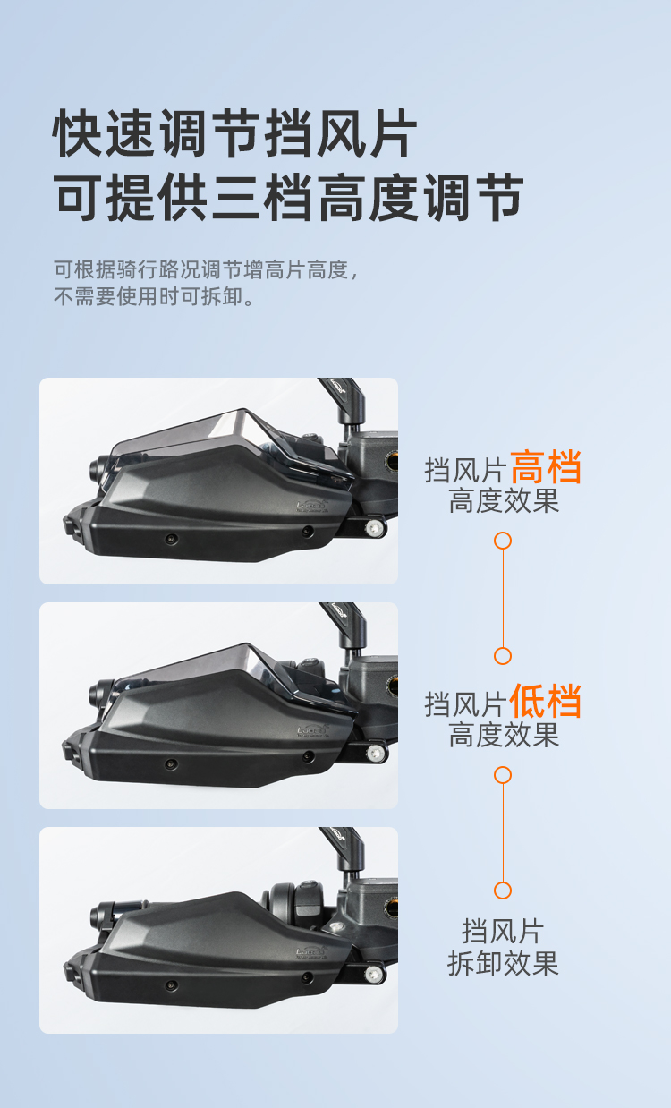 高韧性铝合金护弓挡风片高度快速调节侧面设置缓冲胶易损件方便更换